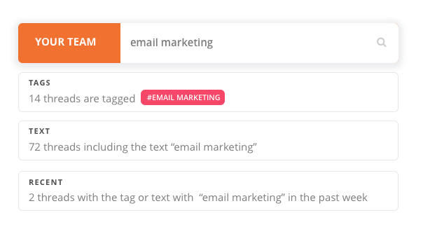 Every chat is searchable by tag, and go even deeper and search by text or files.
